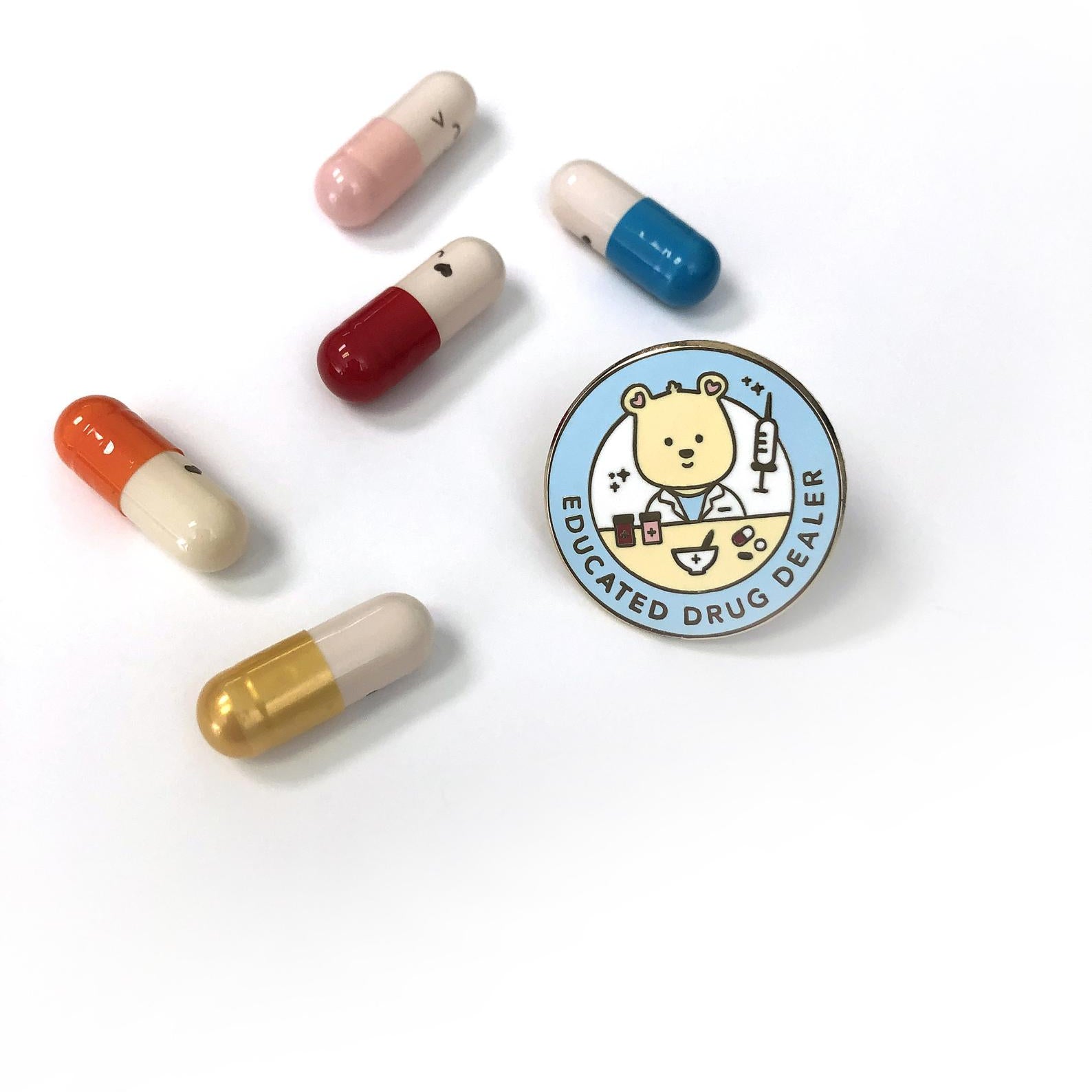 Our cute punny enamel pins, badge reels, stickers and apparel make people HAPPY! We hope each design brings some encouragement, motivation, reassurance, laughter and some serotonin!